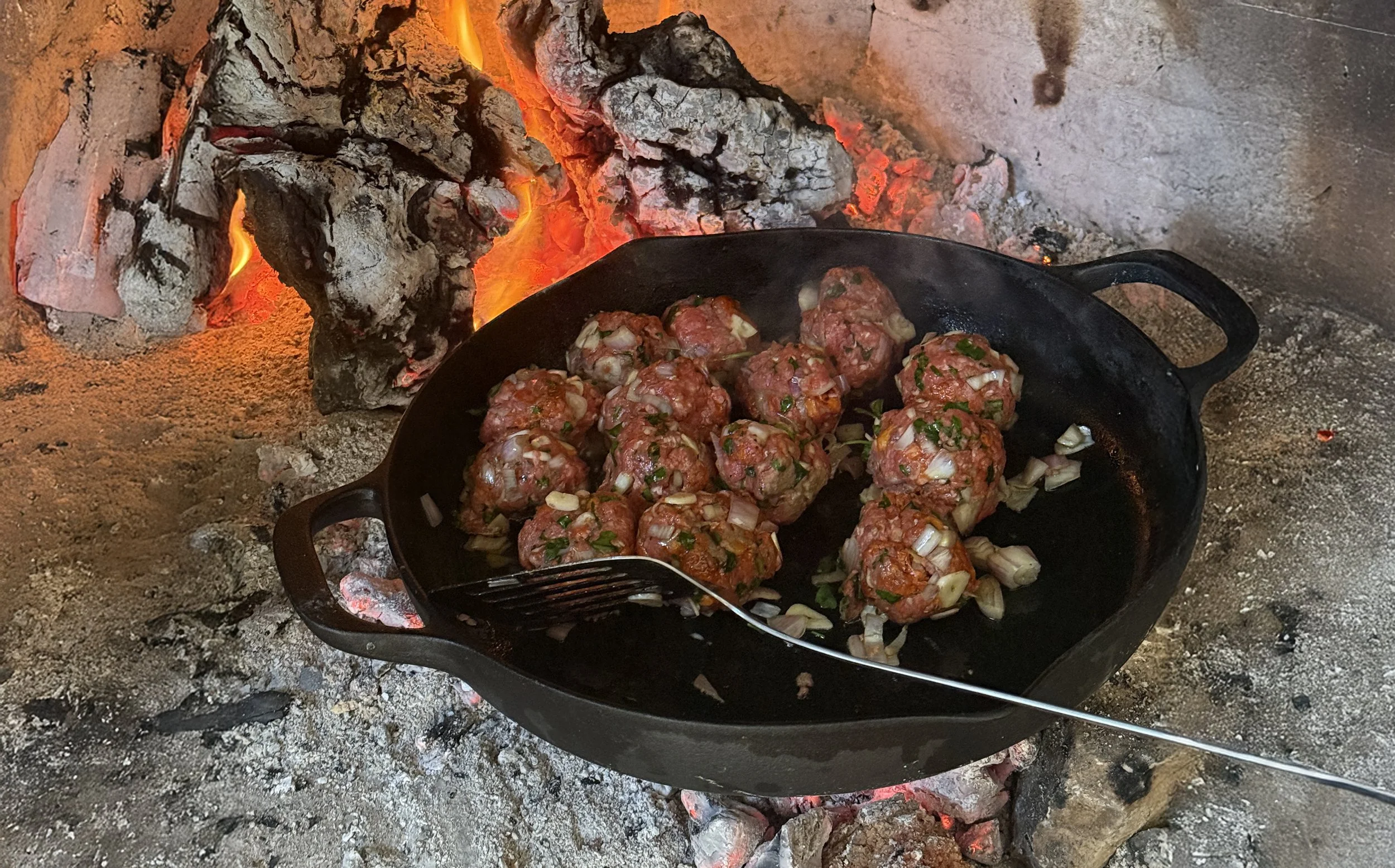 Beef and Chorizo Meatballs (cooked fireside)