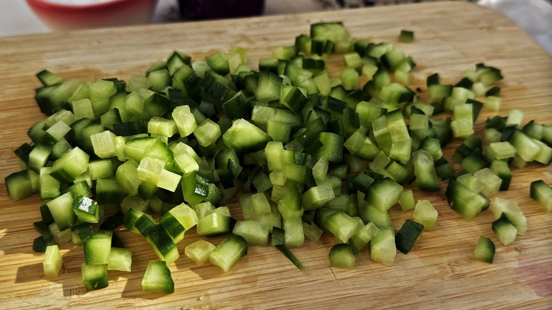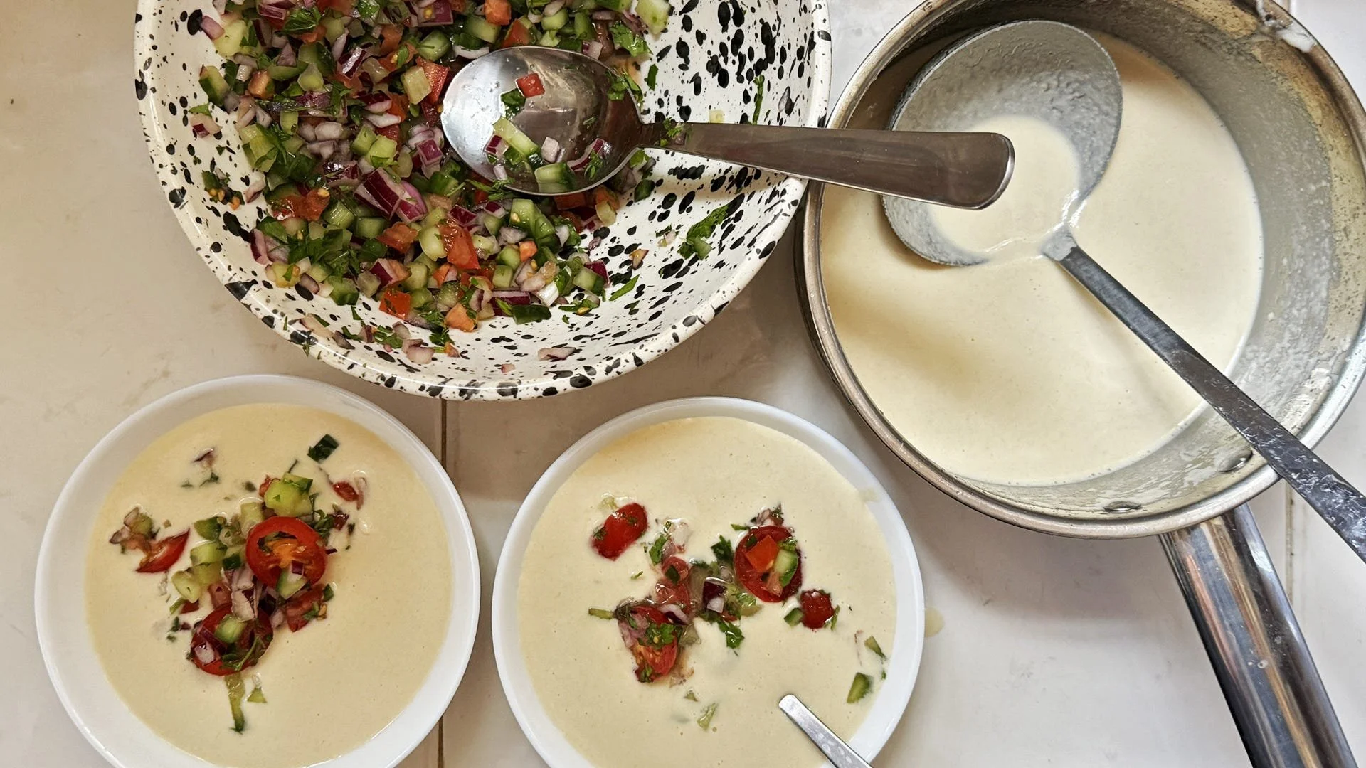 While the soup rests, dice the tomato, cucumber, and onion into uniform, tiny cubes. Toss them with the chopped parsley and a pinch of salt. If lacking acidity, add a squeeze of lemon. (Let the mixture sit for 10 minutes to allow the juices to pool.)
